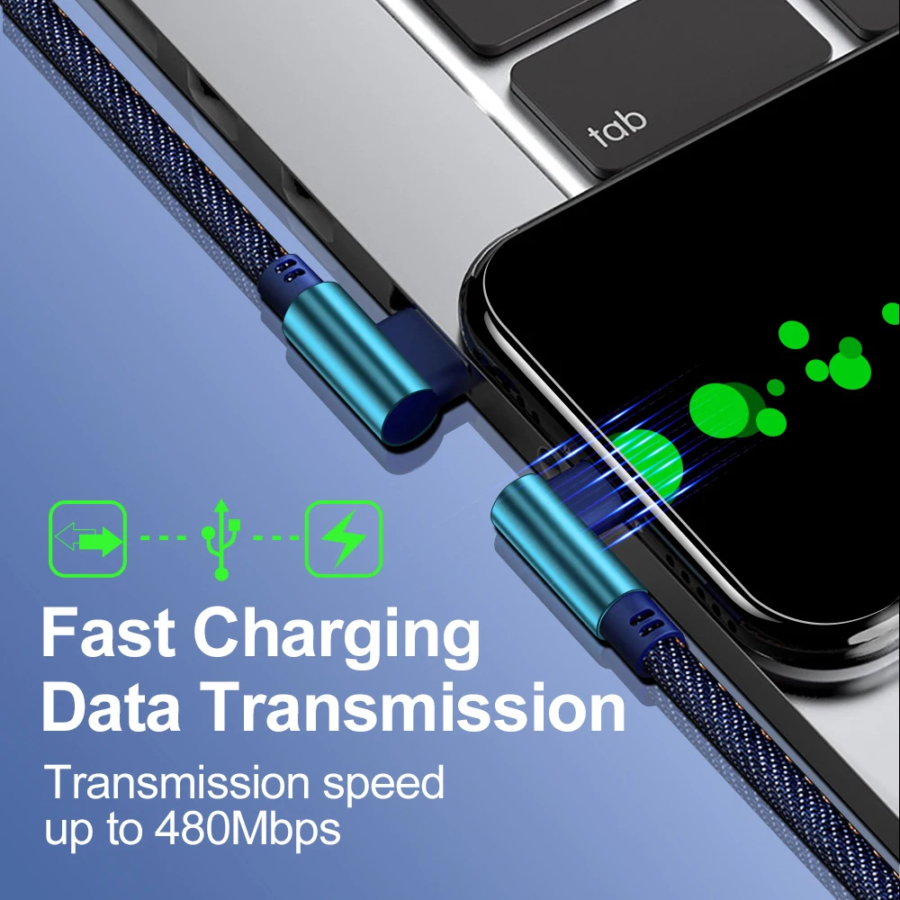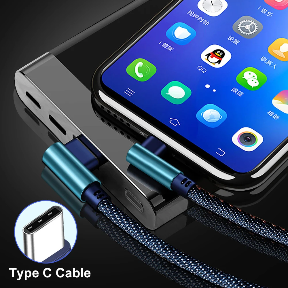 Кабель USB Type-C в джинсовой оплетке, угловой, 90 градусов, для быстрой зарядки, для Samsung, Huawei, мобильный телефон
