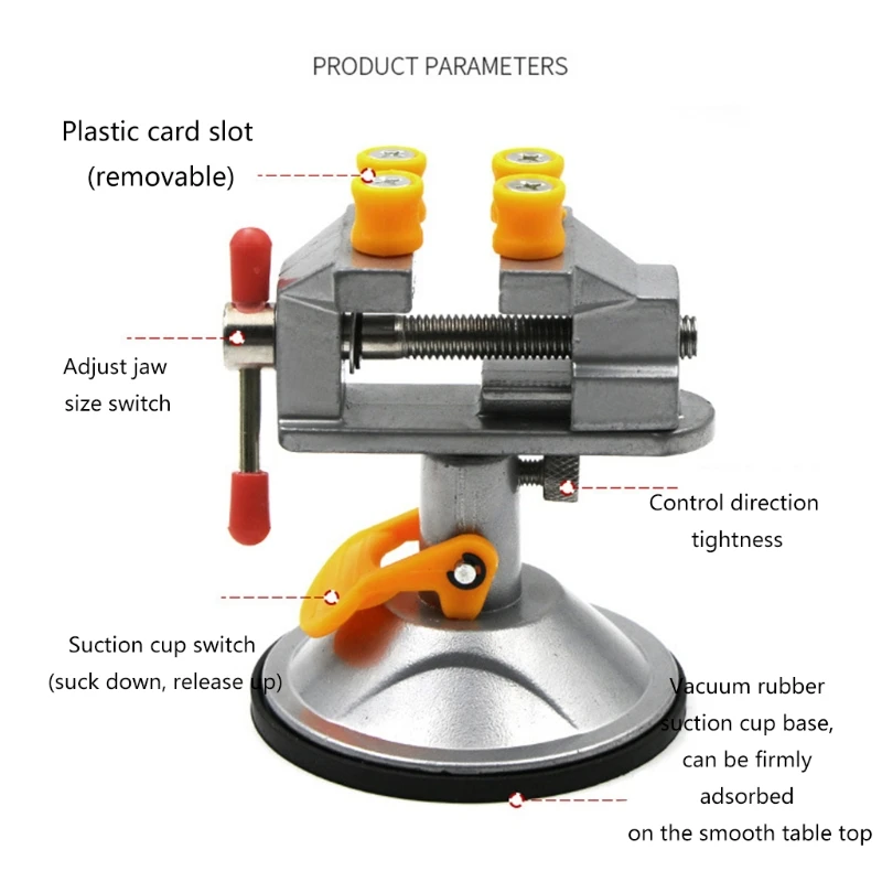 Особенности:Кованые челюсти металла из алюминиевого сплава, лучше иметь пластиковый слот для карт, который не легко повредить объект, что обеспечивает оригинальность Нефритовой резьбы и изделия для резьбы по дереву.Вращение на 360 °, подходит для всех видов плоских настольных компьютеров, присоска и Адсорбция воды более стабильны.0-30 мм регулируемый зажим, углубление провода резьбы, это не легко скользить при использовании, и имеет длительный срок службы.Его можно зажать и зафиксировать для полировки/шлифования/сверления/резки.Спецификация:Тип: настольная тискаМатериал: алюминиевый сплавПрименение: для рукоделия и ремонтаХарактеристики: настольная тиска, регулируемая фиксированная электрическая, вращающаяся на 360 ° шлифовальная машина, роторная ручная дрель, мини щипцы для орехаРазмер: app.7.6x7.8x10.3cm/2.99x3.07x4.06inЦвет: черный, серебристый (по желанию)Количество: 1 шт.Примечание:1. Допускается погрешность в 0-1 см из-за ручного измерения. Пожалуйста, убедитесь, что вы не возражаете, прежде чем сделать ставку.2. В связи с разной конфигурацией разных мониторов изображение не отображает фактический цвет товара. Спасибо!Посылка включает в себя:1 шт. x настольная тиска