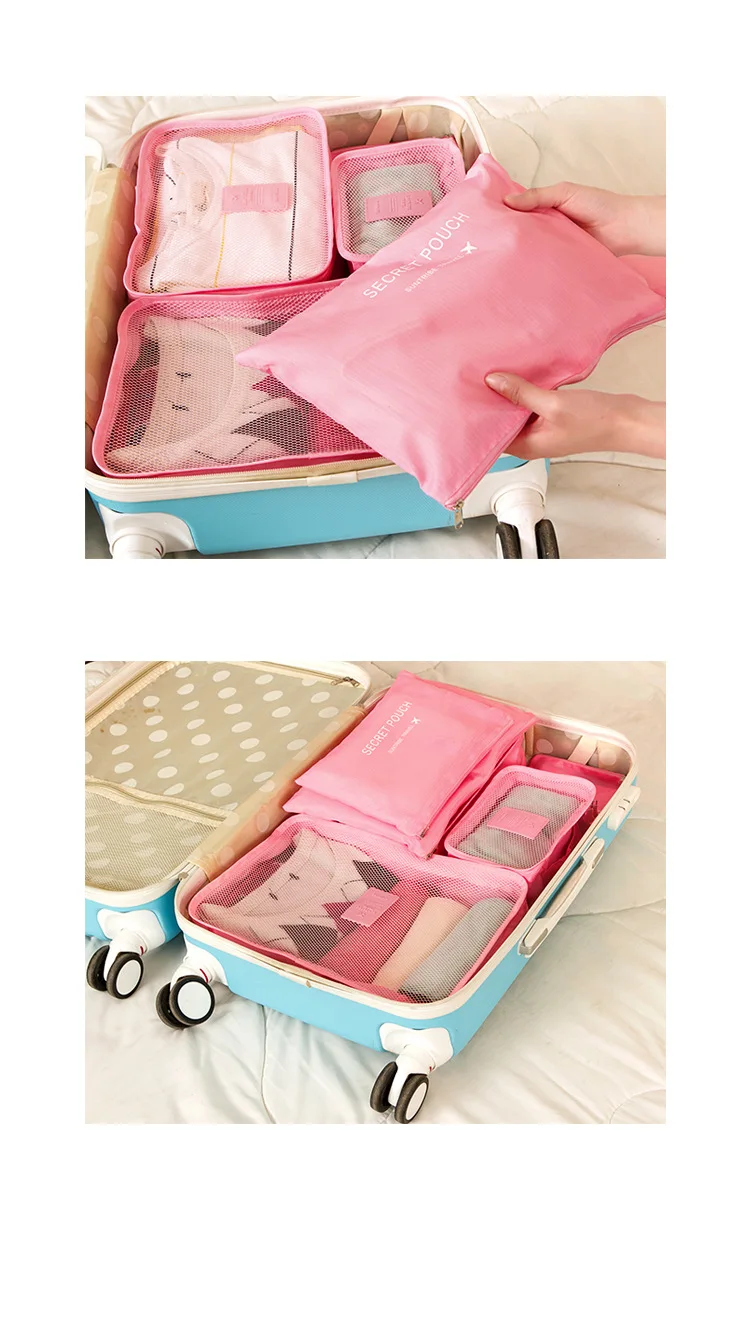 Дорожная Упаковка Кубики 6 шт.компл. путешествия Органайзер Чемодан для гардероба чехол костюм чехол для переноски на Костюмы сортировки и нарочито бесхитростного дизайна; Bolsa De Viaje
