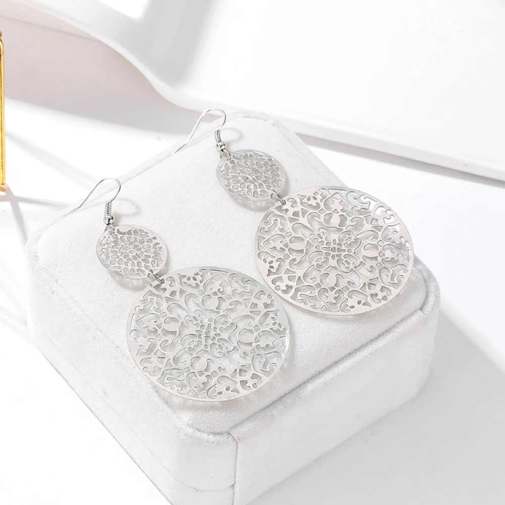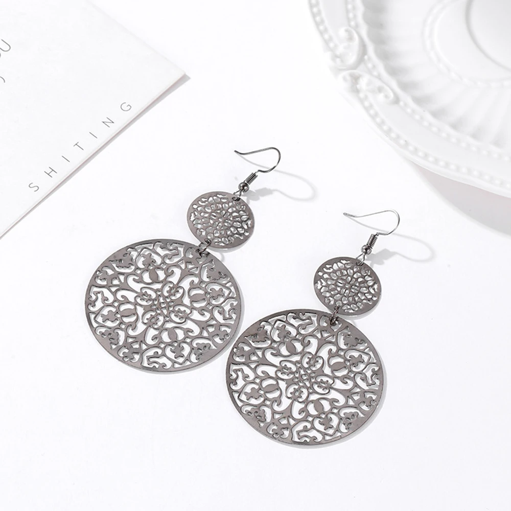 Большие круглые ажурные серьги KaiMin в винтажном стиле бохо, серьги-капли, матовые серьги для женщин, новинка 2021, ювелирные изделия вечерние ринки и свадьбы