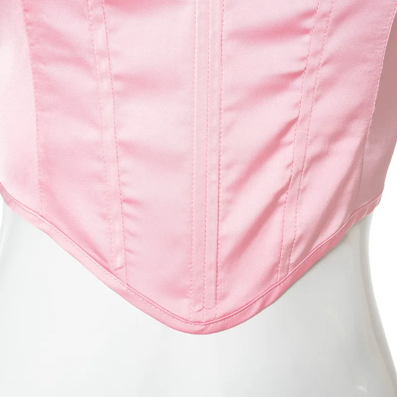Однотонный лоскутный корсет без рукавов с открытой спиной и кружевн...