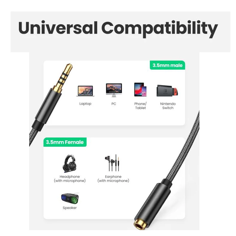 Удлинительный аудиокабель Ugreen 3,5 мм, штекер-гнездо, кабель для ...