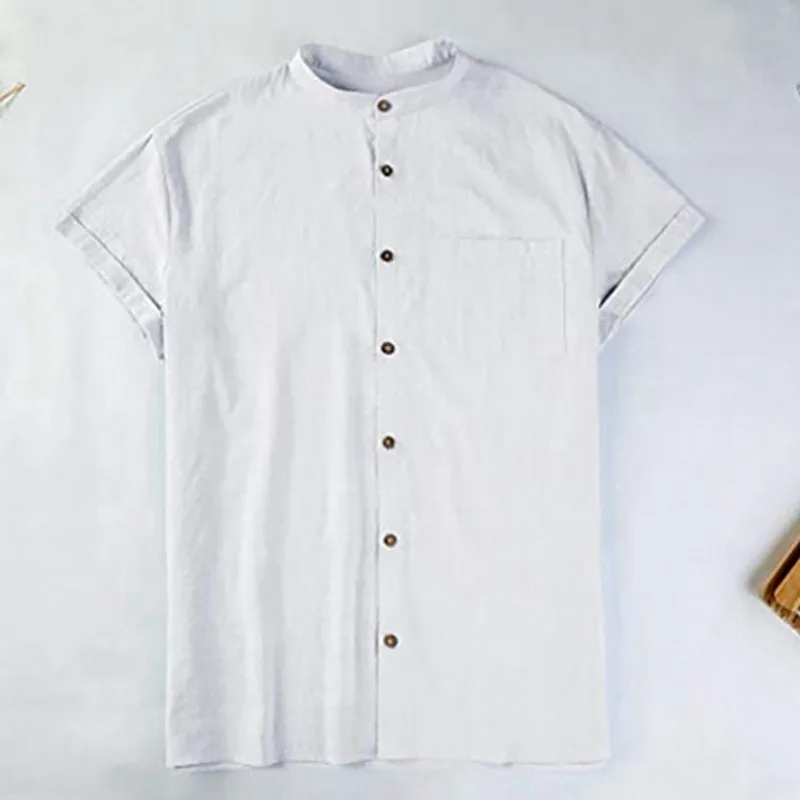 Рубашка Мужская льняная с коротким рукавом, дышащая мешковатая Повседневная сорочка, приталенный силуэт, однотонные хлопковые пуловеры, топ, блуза, 2021