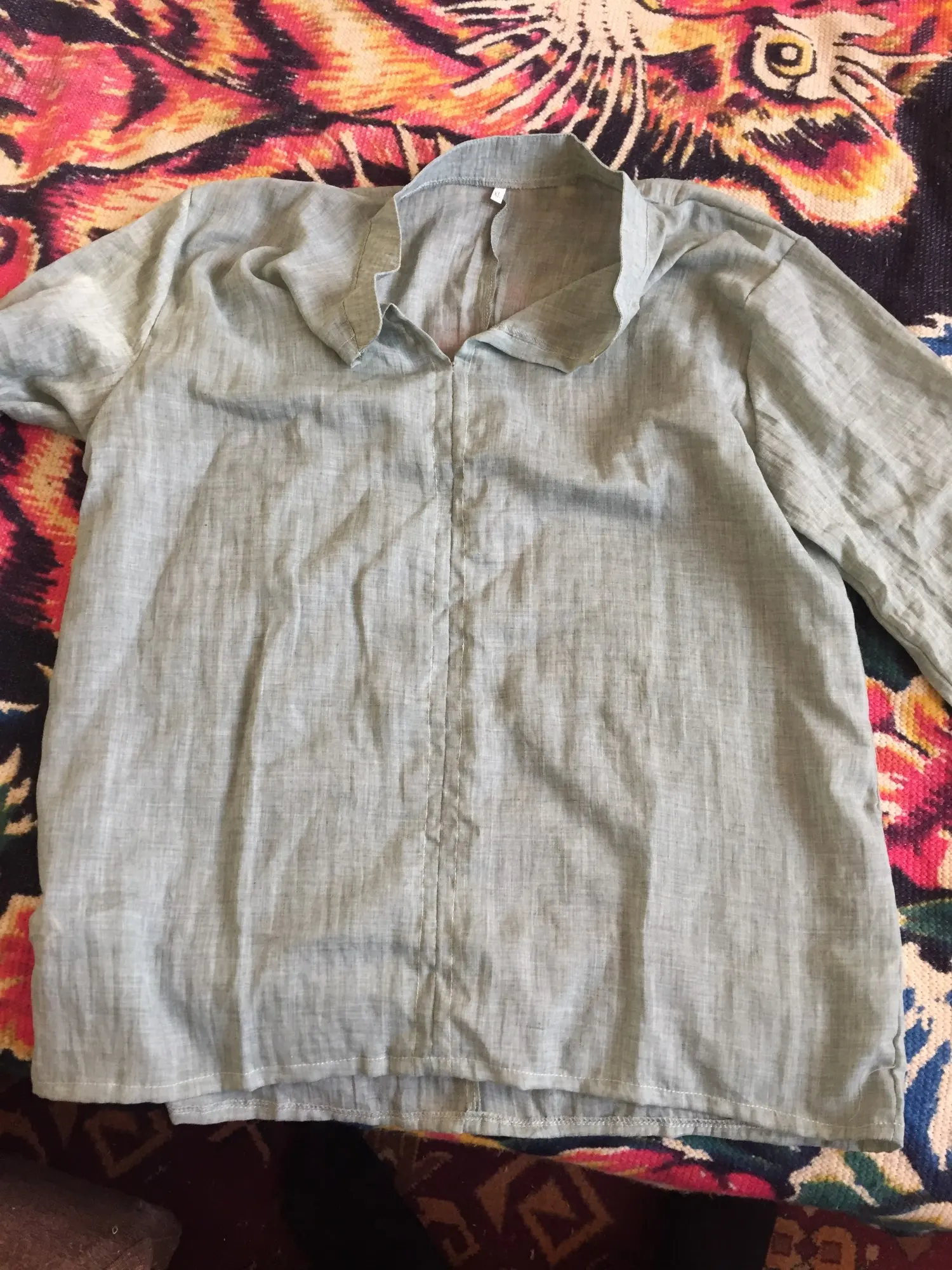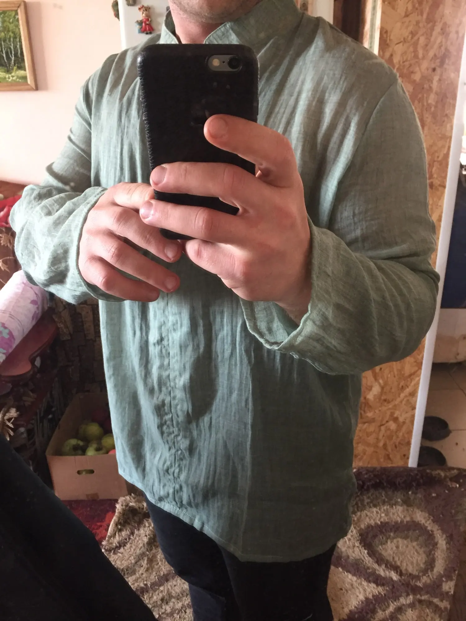 Я заказал 2 рубашки одного размера xxl, зеленая рубашка была на один размер меньше, чем синяя. Теперь у меня только одна рубашка