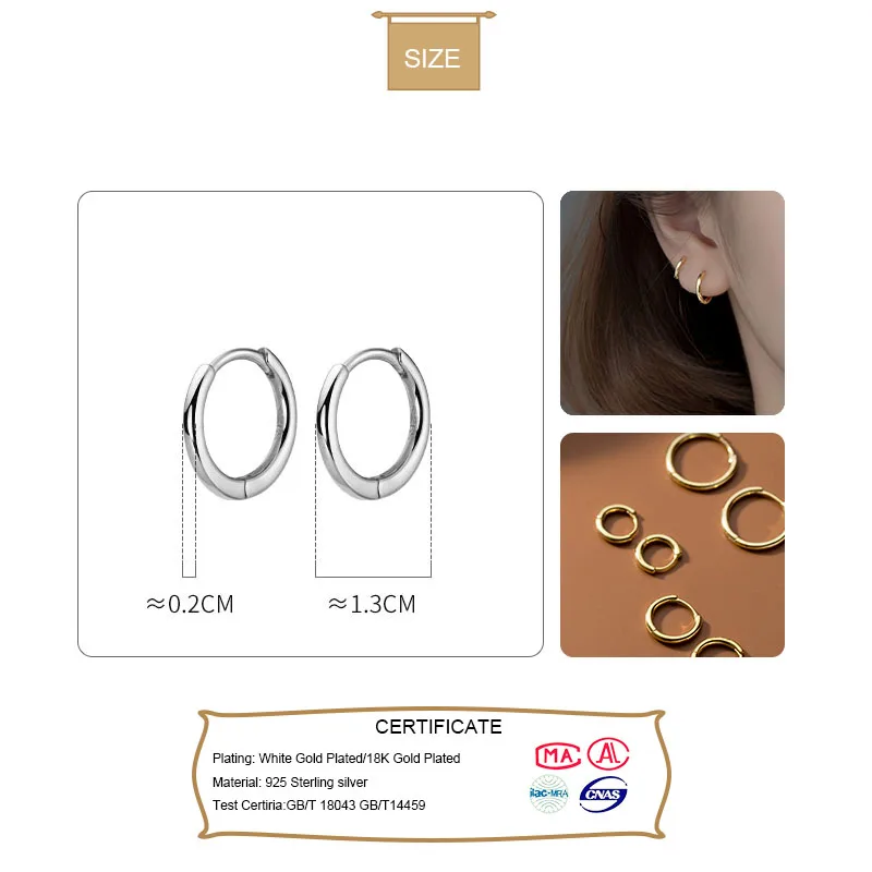 1 пара простые гладкие круглые серьги в виде колец, 925 стерлингово...