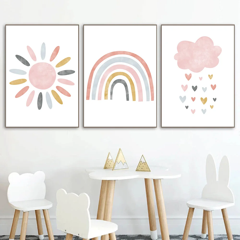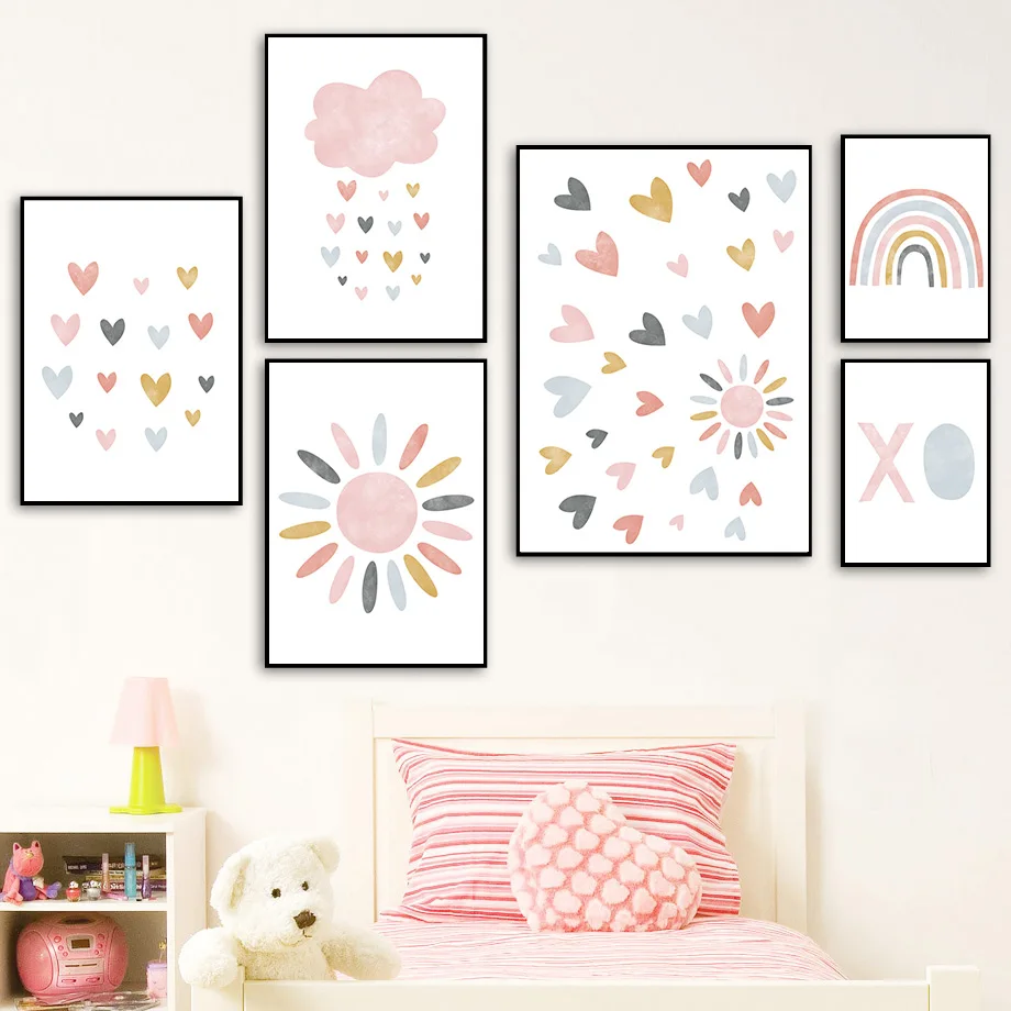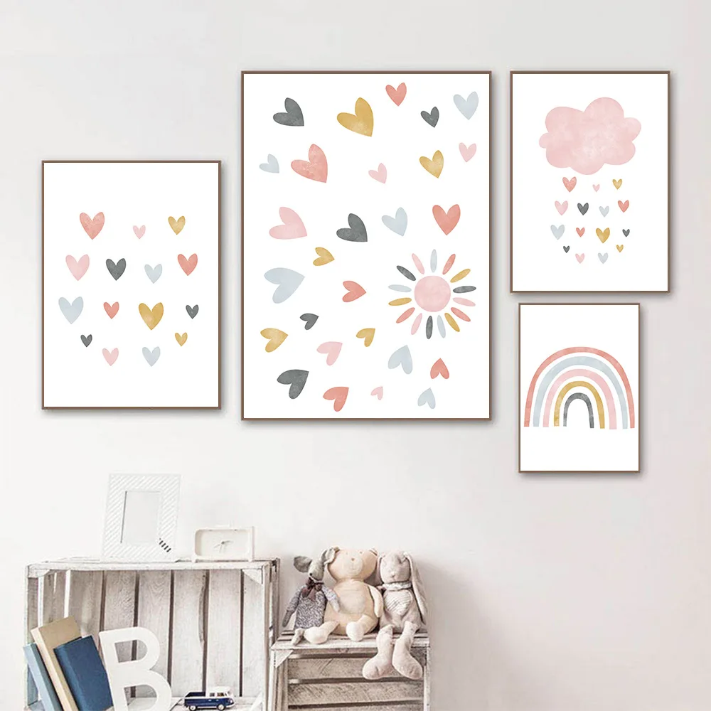 Абстрактная Радуга Сердце настенный плакат солнце облако Художественная печать цитаты на холсте картина Детская фотография нордический Декор детской комнаты