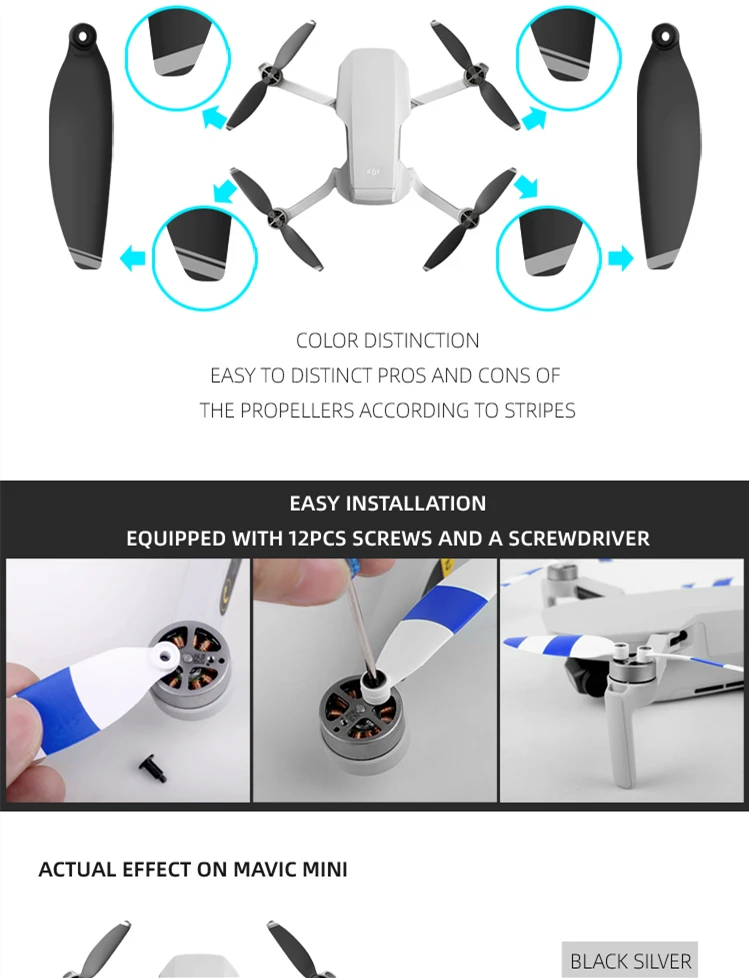Пропеллеры отлично работают с Mini2. Высота вкручиваемой части (где вы устанавливаете пропеллер к двигателю) немного слишком велика, так что некоторые пропеллеры поворачиваются немного жестче в винте. Но это не проблема и со временем она гладкая. Быстрая доставка (менее двух недель, отправлено на следующий рабочий день) никаких проблем. Всегда снова