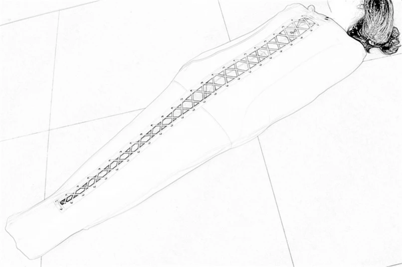 ● Плотно прилегает к телу, затягивая веревкой.