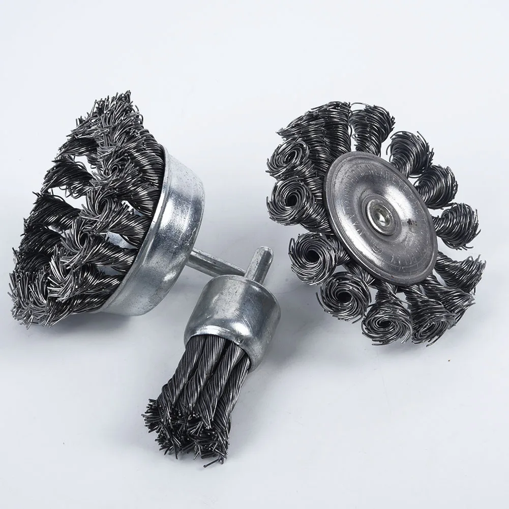 3 шт. стальной Вращающийся шарнир с узлом, плоская проволока, круглая щетка, диск, Удаление ржавчины, полировка для дрели, угловой шлифовальный прибор, вращающийся инструмент