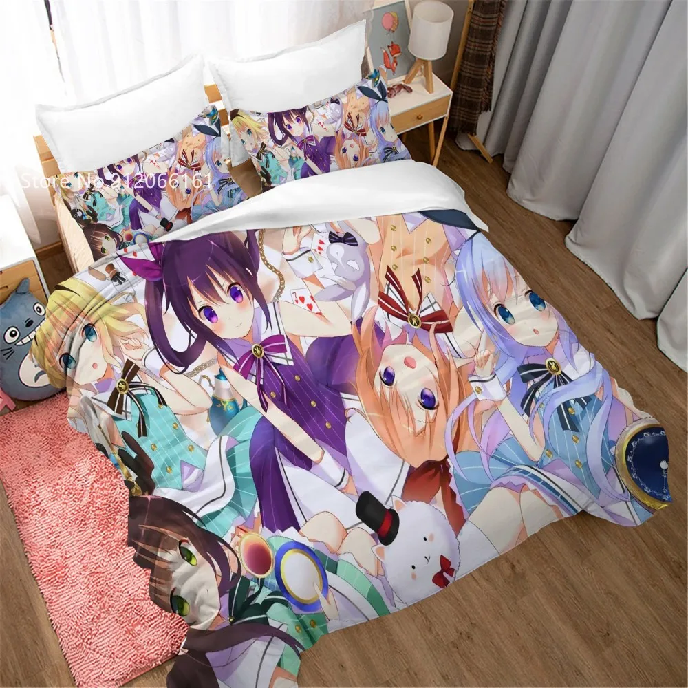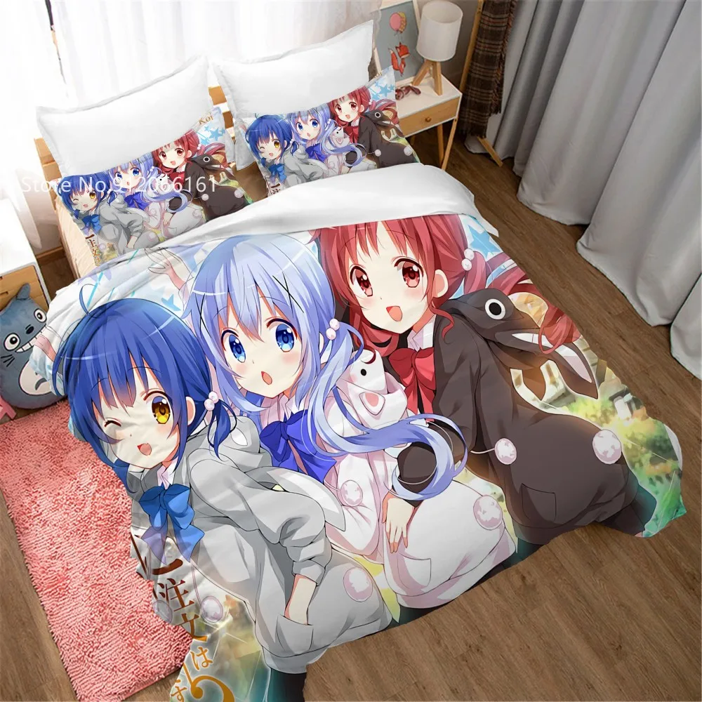 Пододеяльник с 3D-принтом в стиле японского аниме, Комплект постельного белья с принтом кроликов, постельное покрывало для спальни шт.