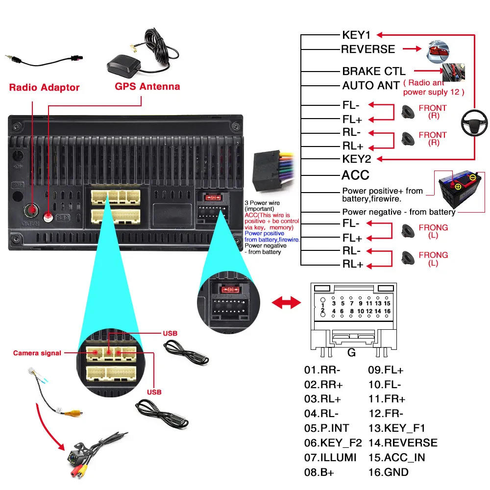 Примечание: Пожалуйста, используйте наши кабели питания для подключения нашего автомобильного радио, невозможно вставить оригинальную автомобильную вилку непосредственно в нашу машину.