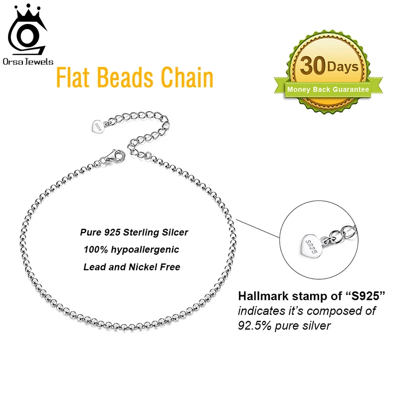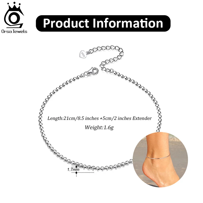 ORSA JEWELS, Стерлинговое Серебро 925 пробы, новый тренд, плоская цепочка с бусинами, ножной браслет для женщин, простой темперамент, сексуальный, хит, цепочка на лодыжке, ювелирное изделие, SA13