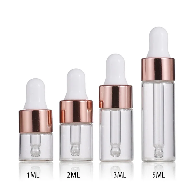 Флаконы для эфирных масел, бутылка из золотого стекла, 1, 2, 3, 5 мл, бутылочка с пипеткой, 5 шт.