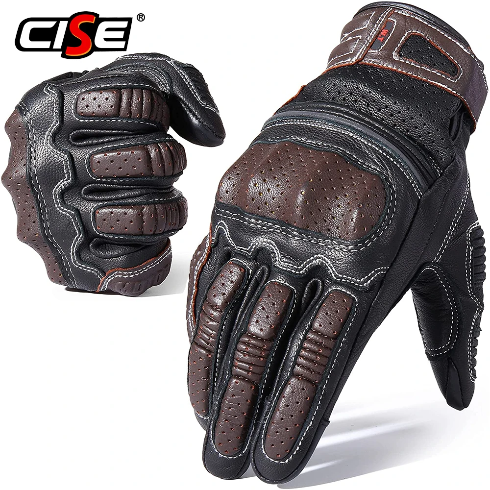 Профессиональные мотоциклетные перчатки из натуральной кожи CISE: