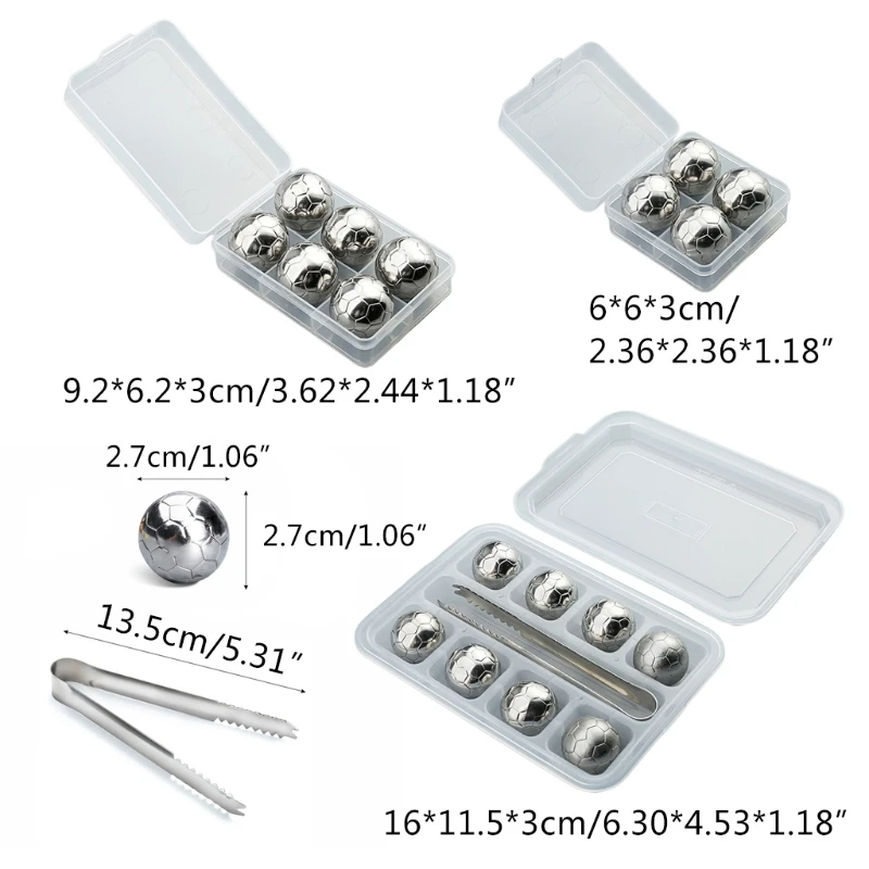 Форма футбольного мяча 11XC, камень для виски, охлаждающие камни, многоразовые кубики льда из нержавеющей стали для охлаждения вина, напитков, питья