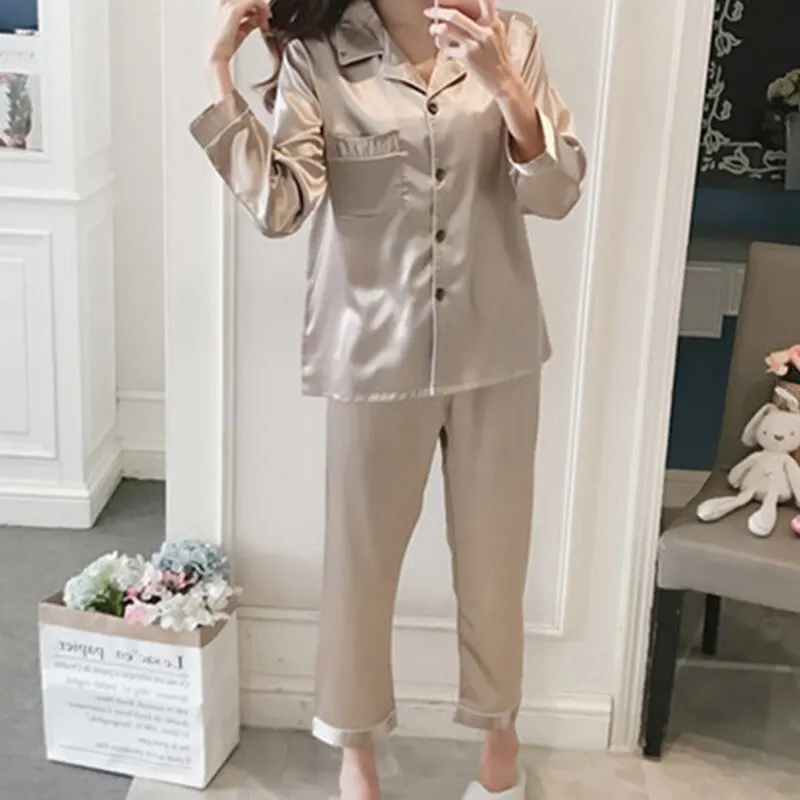 Женский Атласный пижамный комплект, повседневная элегантная одежда для сна, Пижамный костюм для пар на лето и весну, Женский комплект для сна из двух предметов, Мужская одежда для отдыха, Новинка