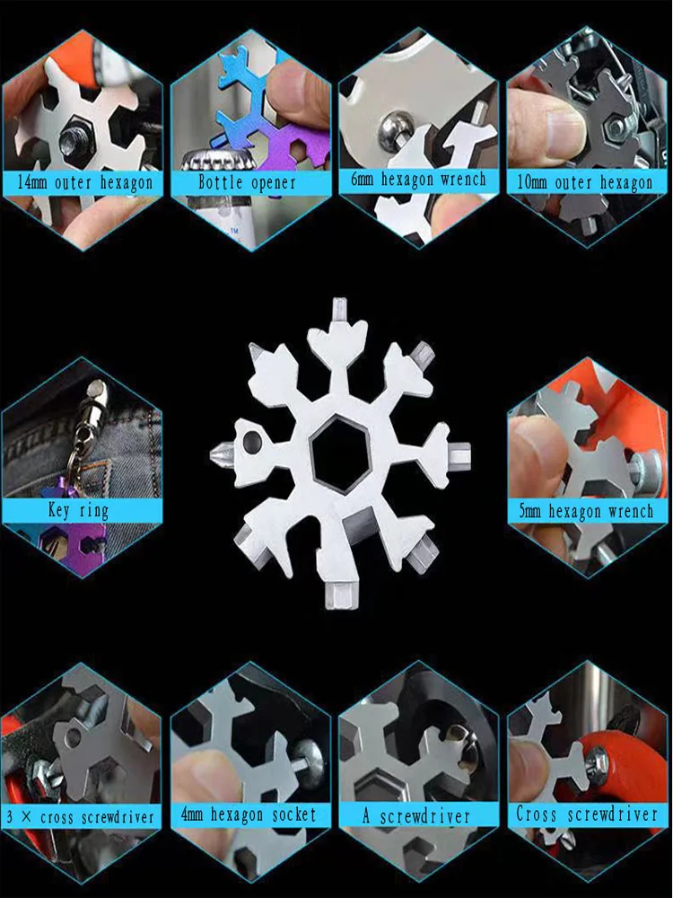 18 в 1, шестигранный Многофункциональный гаечный ключ в виде снежинки