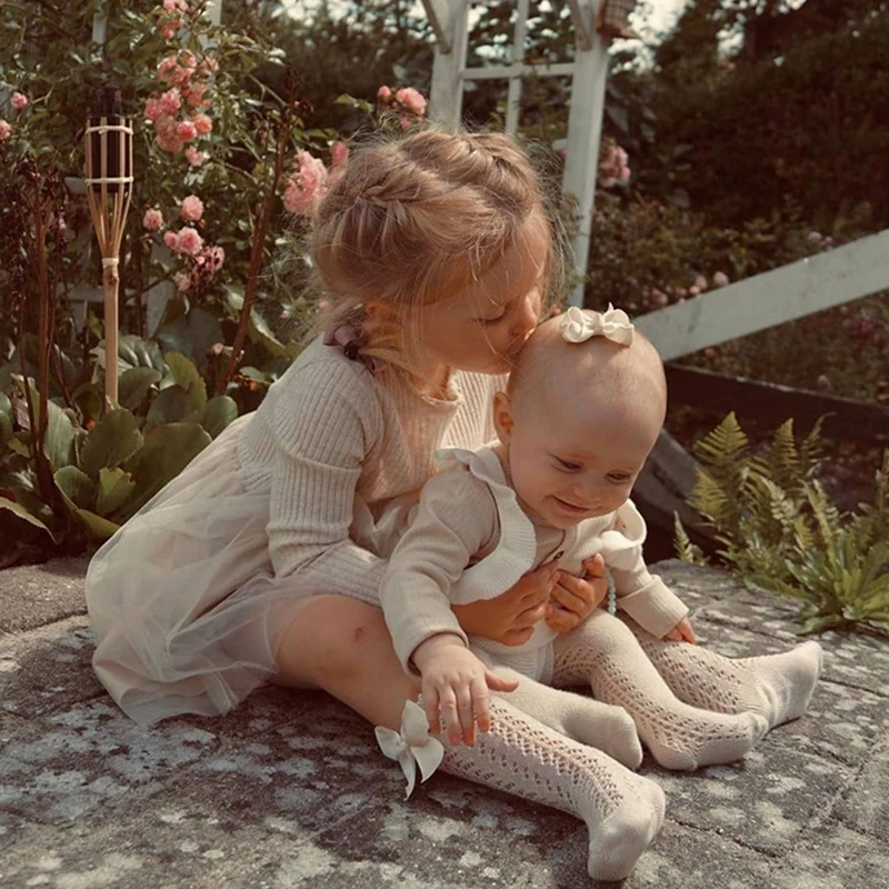 Детские ажурные носки до колена с бантом в Королевском Стиле для де...