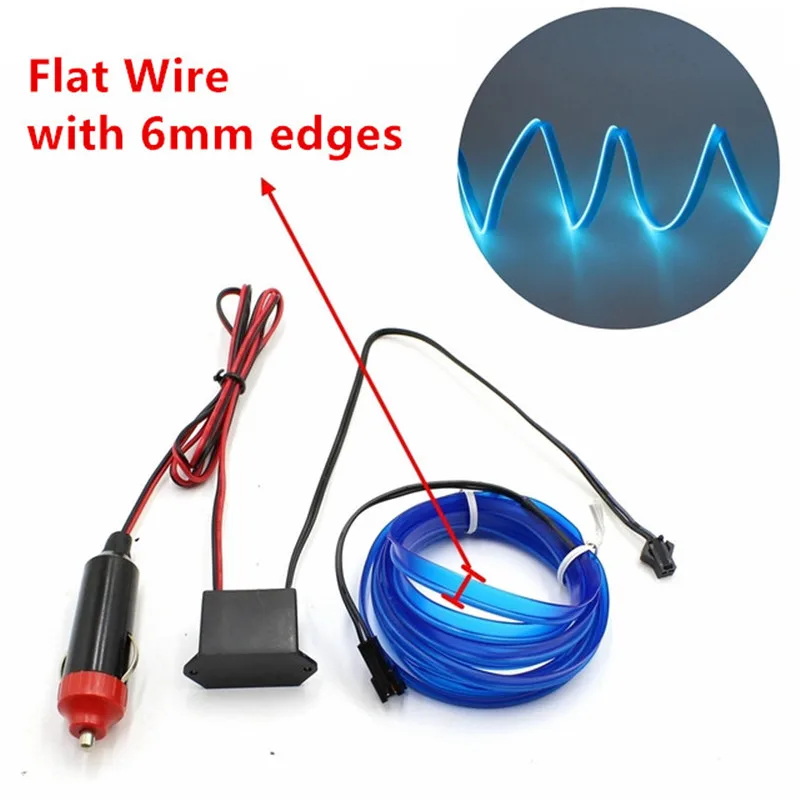 EL провода с сигареты светильник er Гибкая неоновая лампа светящийся канат трубки кабель Светодиодные ленты светильник для украшения автомобиля с 6 мм Швейные край