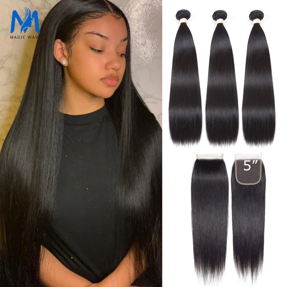 Пряди волшебных волнистых волос, пряди из натуральных волос на сетке 5 Х5, 36 дюймов, 40 дюймов, прямые, 3 пряди с прозрачной сеткой