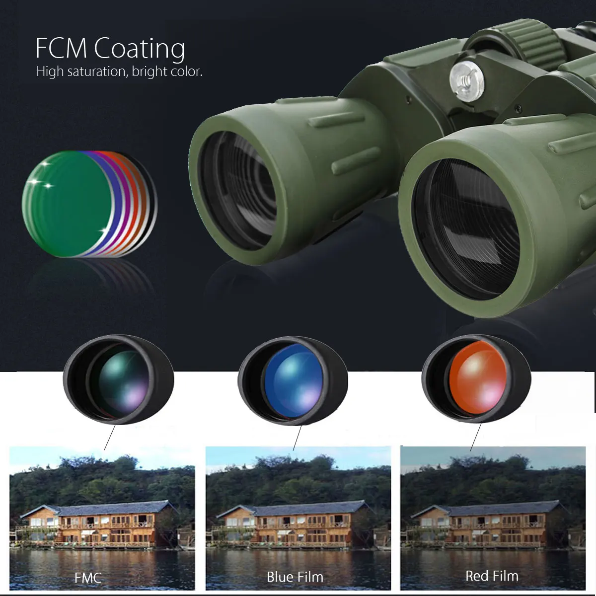 Бинокль высокой четкости 60X50, мощный для охоты и занятий спортом на открытом воздухе, оптический телескоп с ночным видением и фиксированным зумом