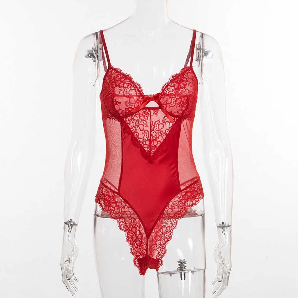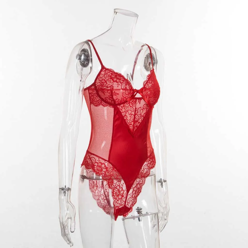 Эротическое нижнее белье, боди, красный кружевной цельный комбинезо...