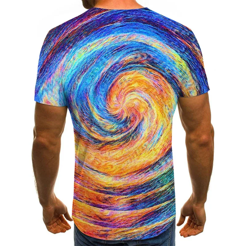 Новая модная летняя цветная Мужская Повседневная футболка с 3d принтом и коротким рукавом Футболка с круглым вырезом Веселая вращающаяся уличная одежда