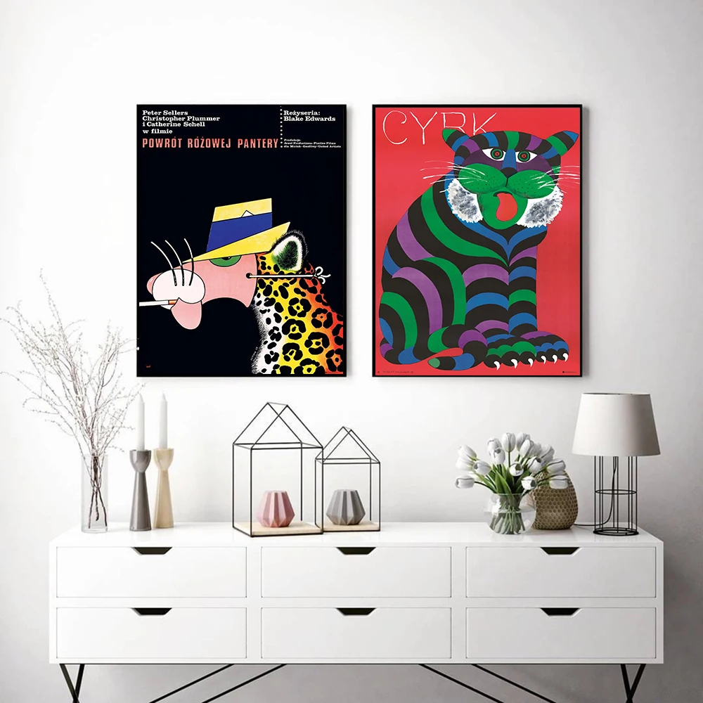Постеры для польских фильмов Возврат розовой Пантеры, тигр, слон, пленка, Ретро Винтажные принты, Картина на холсте для домашнего декора, подарок