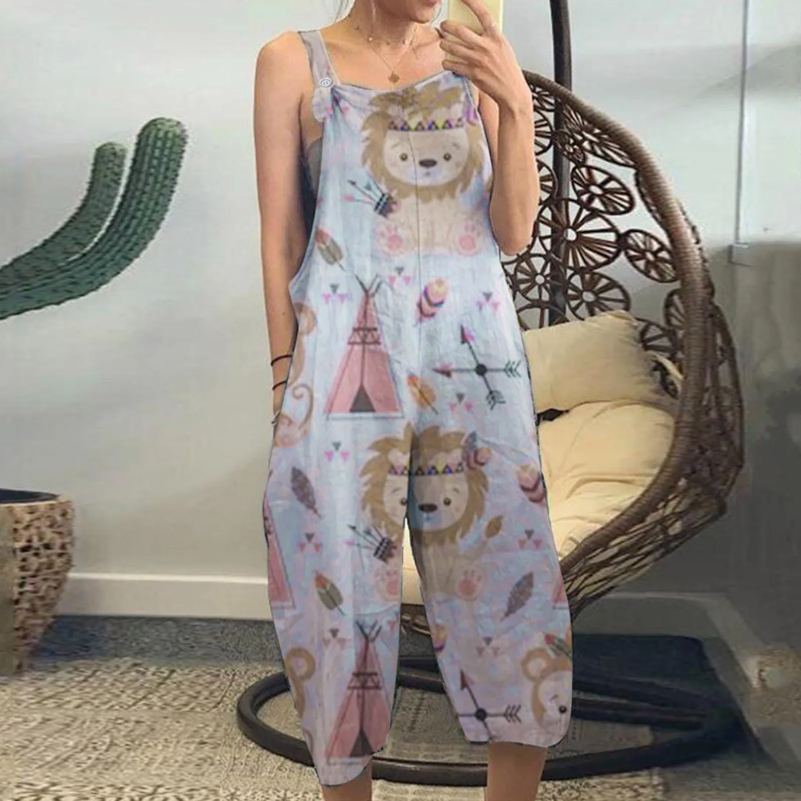 Женский комбинезон на бретельках, летний Свободный комбинезон без рукавов с принтом динозавра