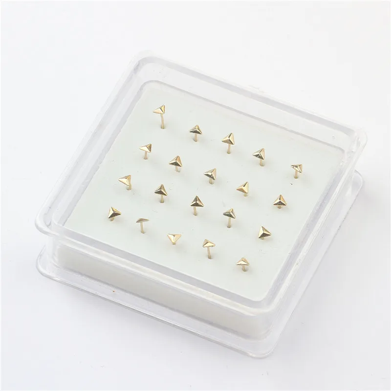 20 шт.кор. Золотой цветной шарик конец нос шпильки контактный Треугольники короны цветка Форма Регулируемый изгиб нос кольцо для Для женщин и девочек
