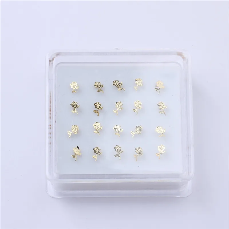 Серьги-гвоздики в форме цветка розы для пирсинга носа женские, унив...