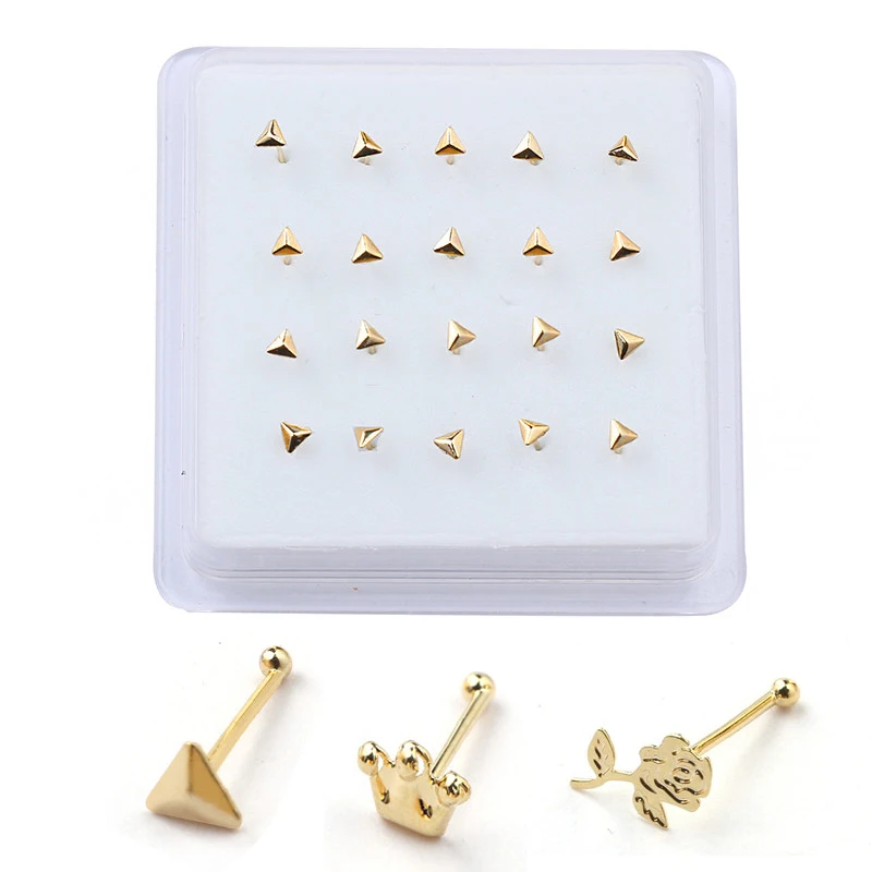 20 шт. Позолоченные шариковые булавки для носа в форме короны пирси...