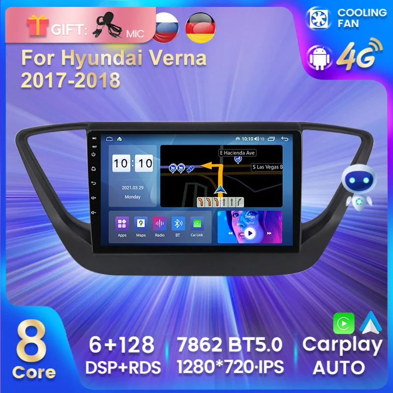 Автомобильный радиоприемник MEKEDE IPS 6 + 128G DSP Android11, мультимедийный плеер для Hyundai Verna 2017-2018, GPS-навигация, встроенный Carplay, автоwifi