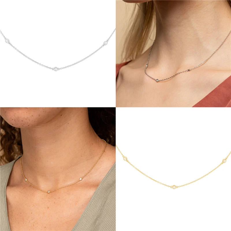 Ожерелье женское из серебра 925 пробы, инкрустированное бриллиантами, 18 К, ожерелье бижутерия