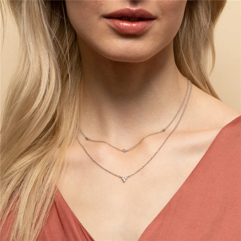 Двойное ожерелье BOAKO, цепочка до ключиц из стерлингового серебра ...