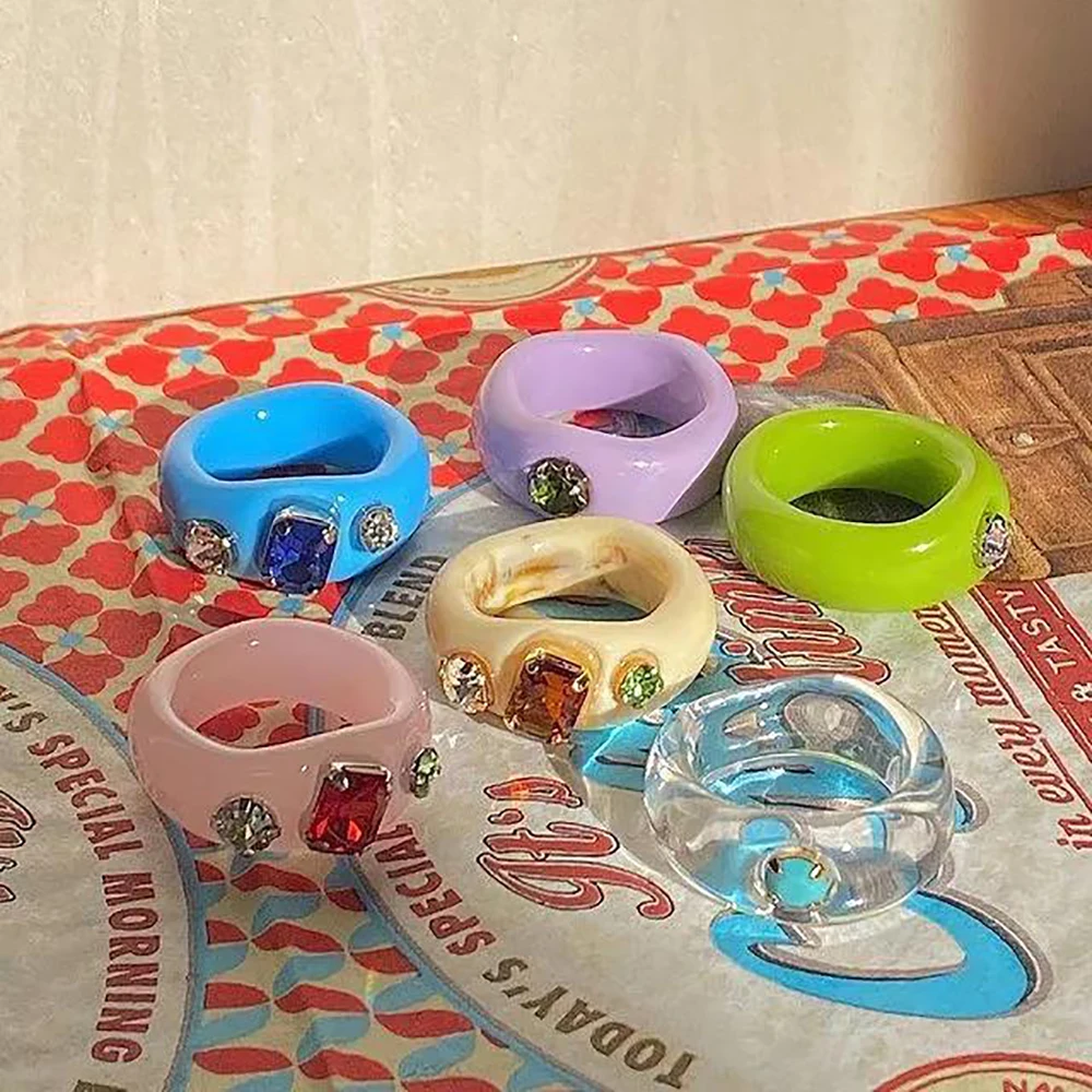 Женские прозрачные круглые кольца, стразы из бисера и смолы, яркие геометрические, Y2k, ювелирные украшения для вечеринок