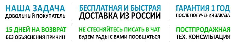 ГАРАНТИЯ1) На все товары в нашем магазине действует гарантия в течении 1 года после получения заказа (гарантия не распространяется на поврежденные покупателем товары или неправильно эксплуатируемые).