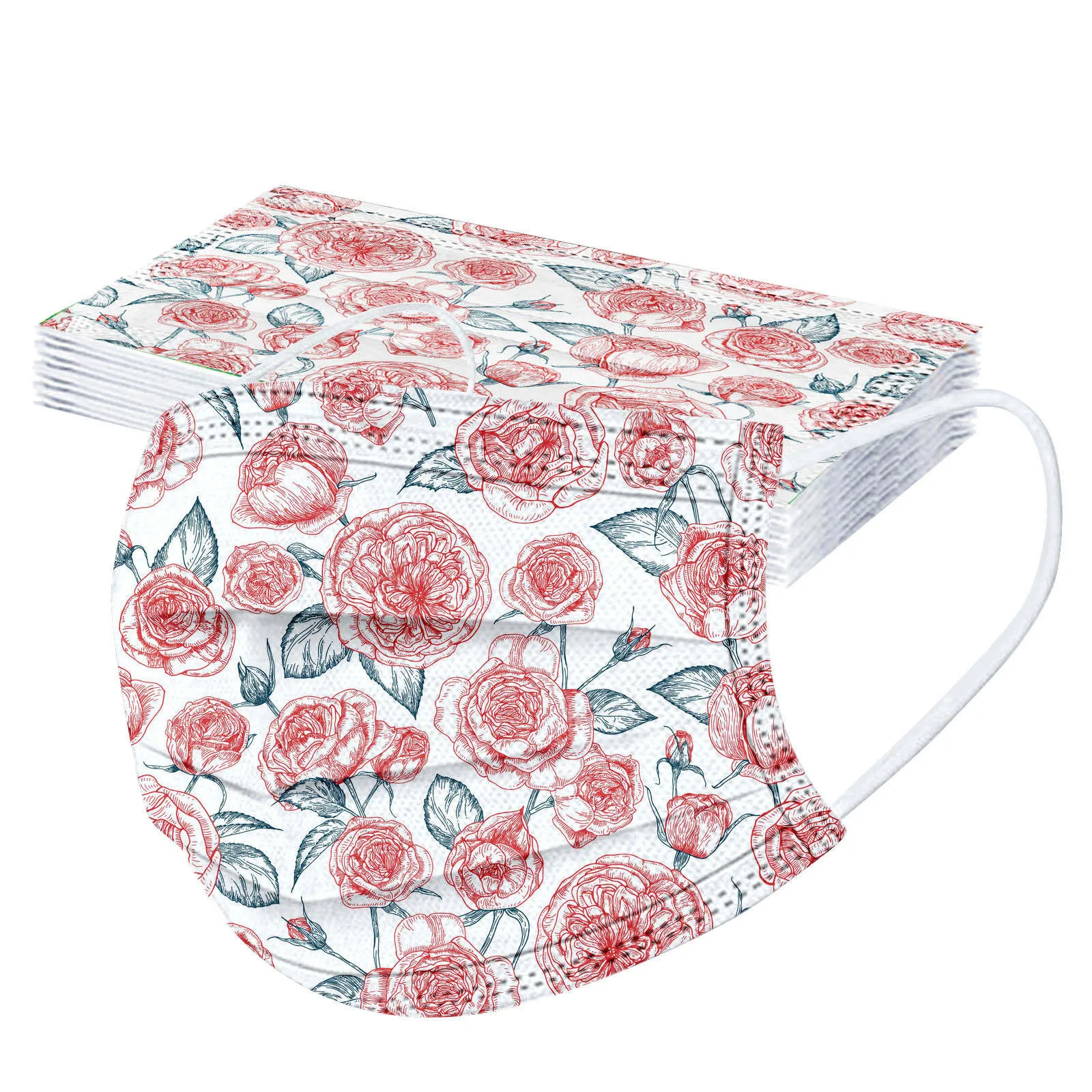 Маска для лица, трехслойная, одноразовая, с цветочным принтом, лицевая маска с фильтром, 1050 шт.