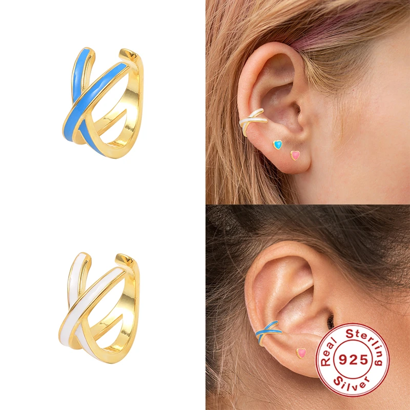Автоклав 2021 тренд Винтаж Pendientes плата 925 пробы Серебряные серьги для Для женщин клип серьги без Earholes Крест Эмаль серьги