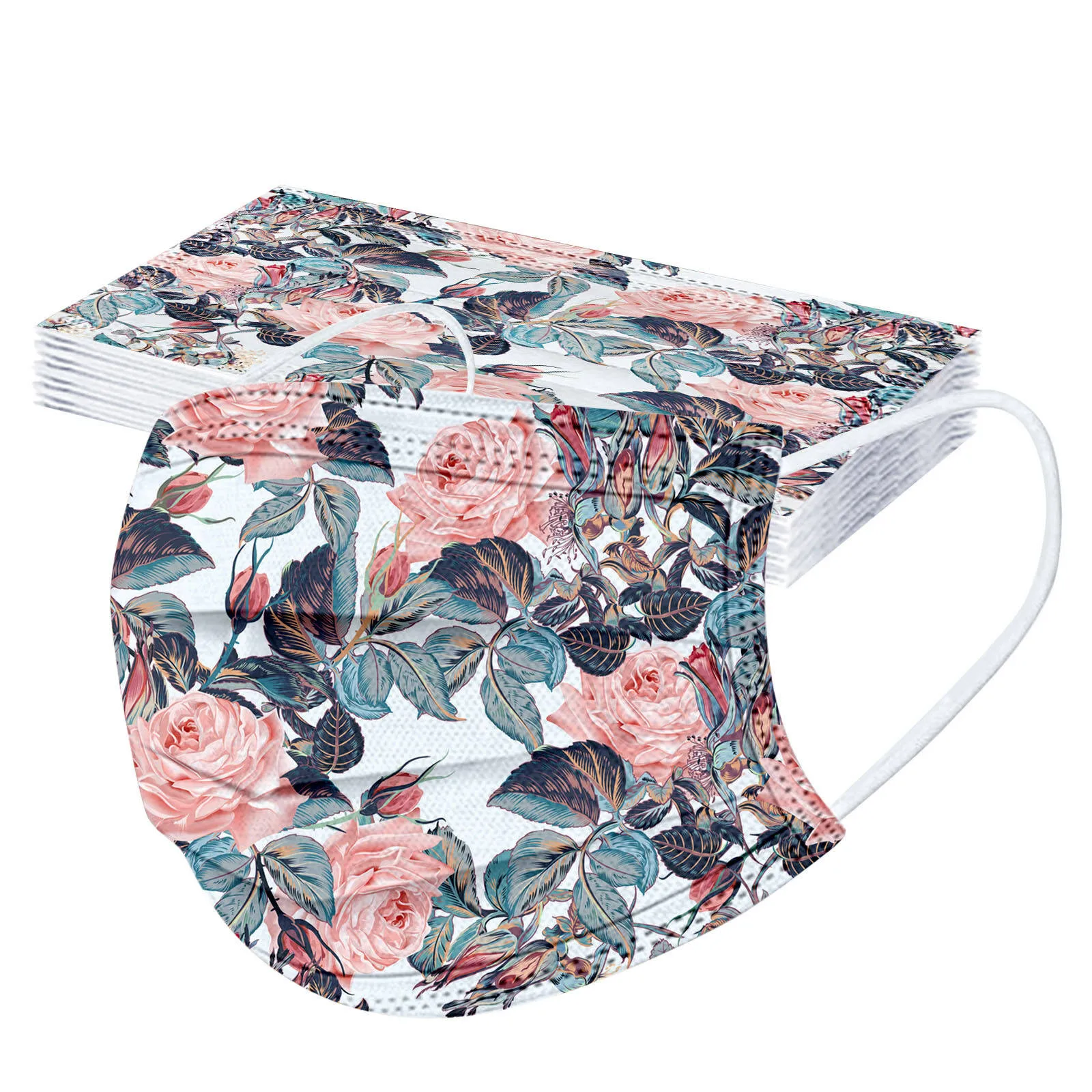 1050 шт Цветочный одноразовая маска для взрослых 3 Слои слоев фильтр нетканые маски для лица маска печатных Earloops маска для полости рта Mascarillas