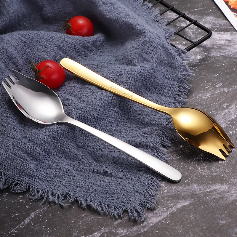 304 Нержавеющаясталь Ложка Вилка интегрированная столовые приборы домашнего салата ложка, вилка для фруктов суповая ложка оптовая продажа Портативный посуда