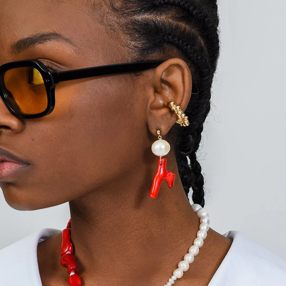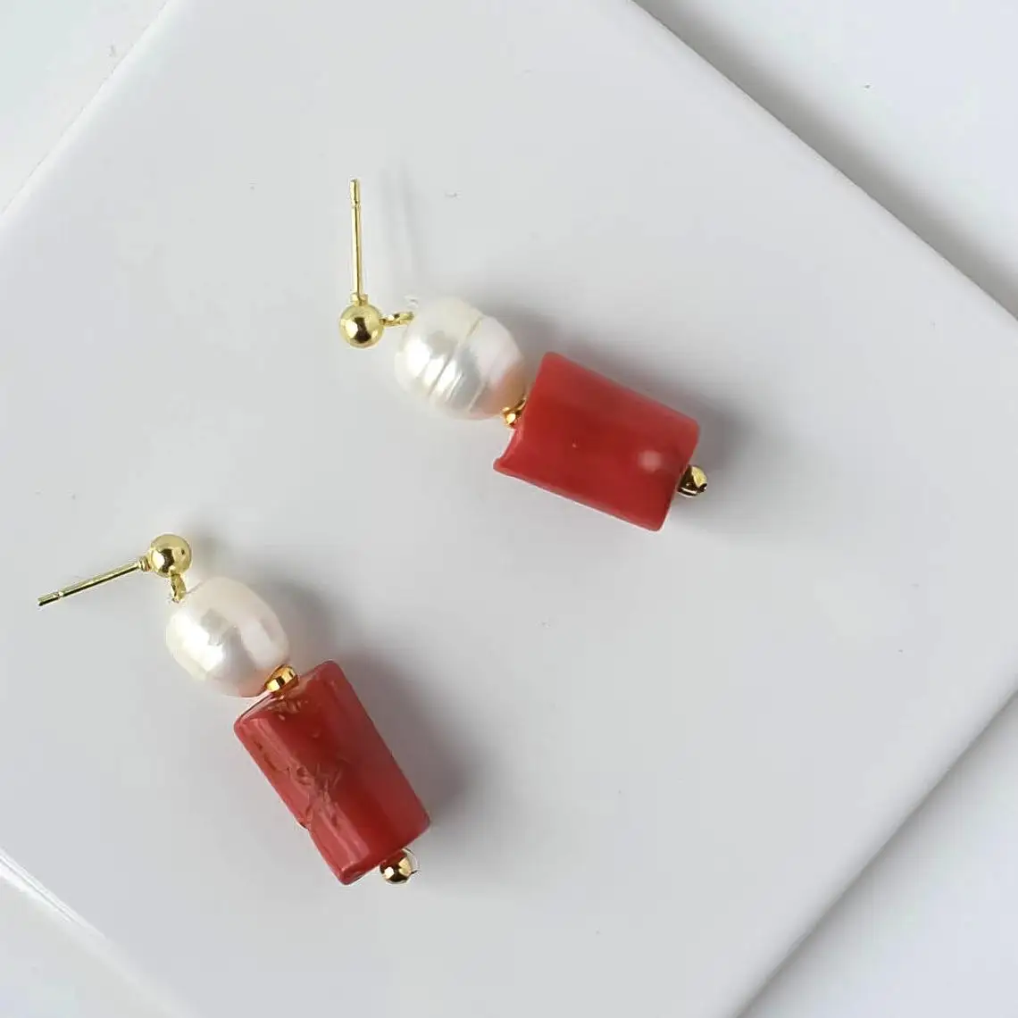 Креативные Крупные Африканские большие красные коралловые Бамбуковые серьги с пресноводным жемчугом для женщин ожерелье аксессуары поделки ювелирные изделия в стиле бохо