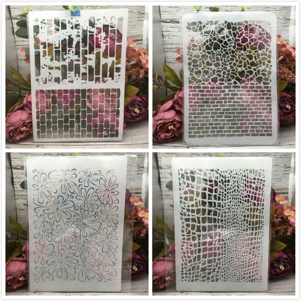 4 шт. A4 29 см веб-сетка кирпичной текстуры DIY наслоения Трафареты настенная живопись раскраска для скрапбукинга тиснильный альбом декоративные шаблон