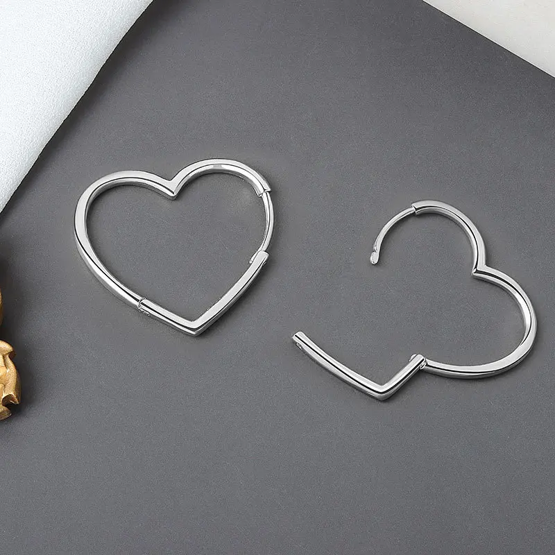VOQ 925 стерлингового серебра простой серебристый цвет Серьги Два Цвета любящее сердце серьги-кольца для женщин подарок