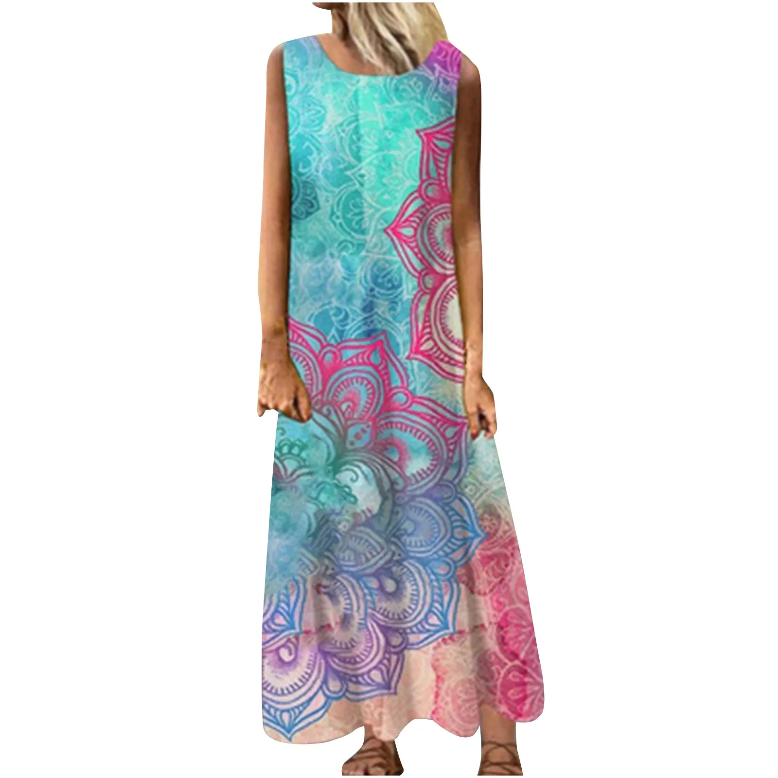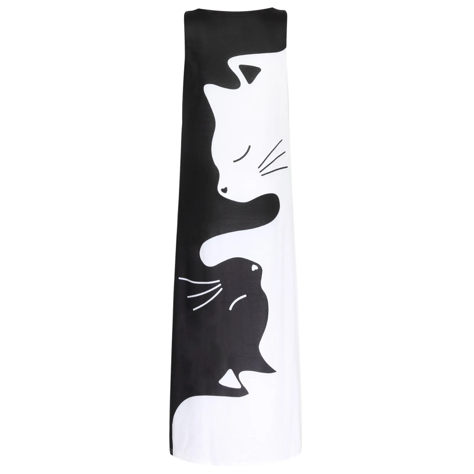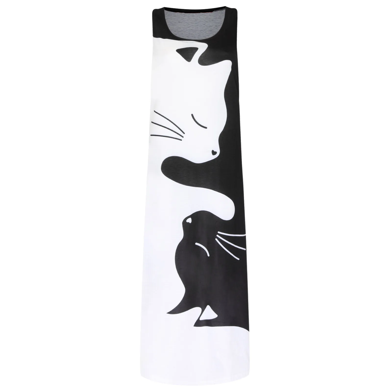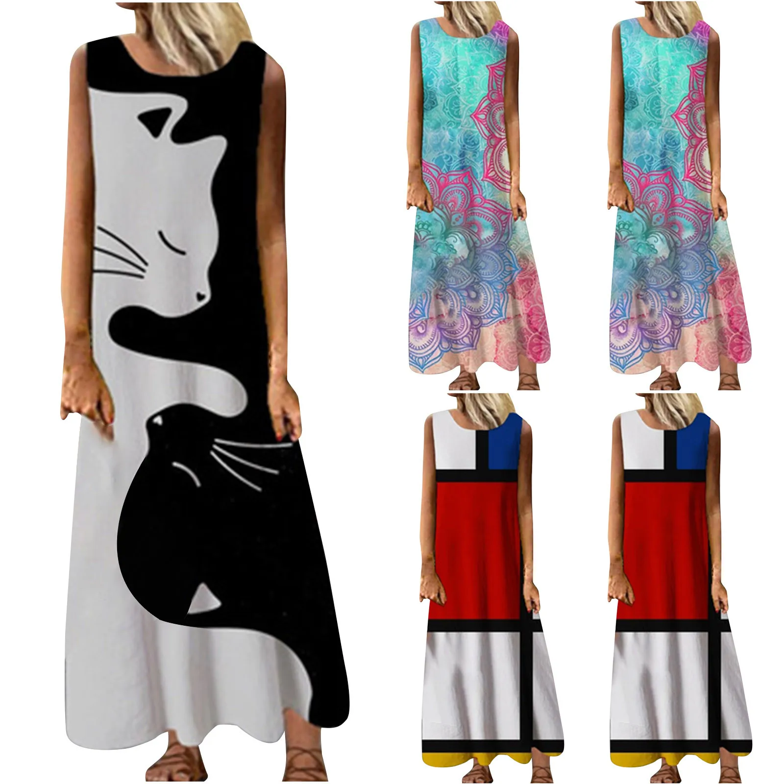 Женское летнее платье с принтом кошек, повседневное Свободное длинное пляжное платье без рукавов с круглым вырезом, женская одежда Zomer Jurkjes Dames 2021