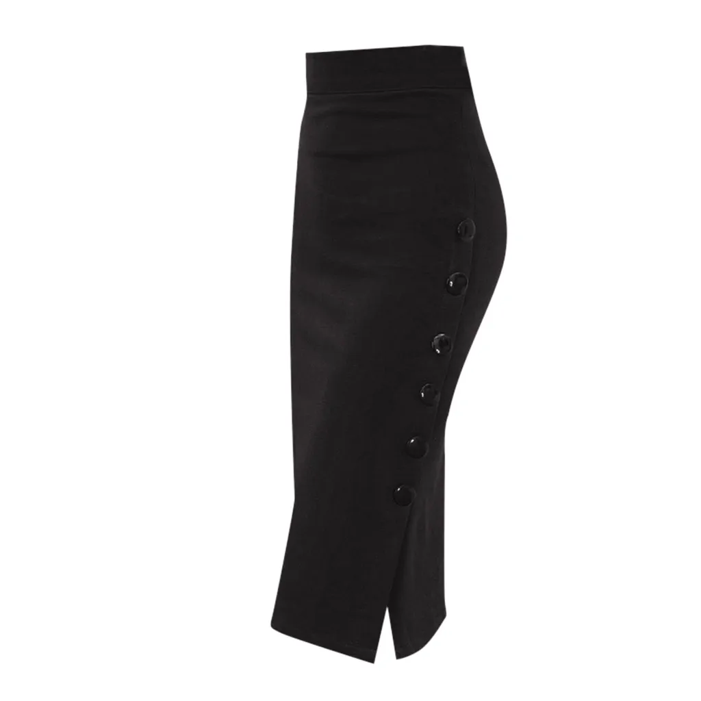 Женские юбки-карандаш с завышенной талией и пуговицами, офисная юбка разных размеров, Женская облегающая юбка-карандаш, привлекательные юбки с разрезом