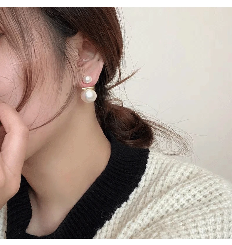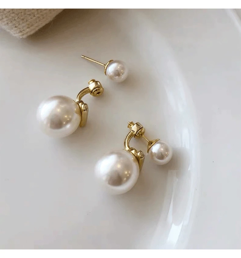 Искусственный жемчуг серьги-гвоздики для женщин Простой Дизайн Асимметричная Двусторонняя белая жемчужные серьги, модное ювелирное изделие вечерние подарки