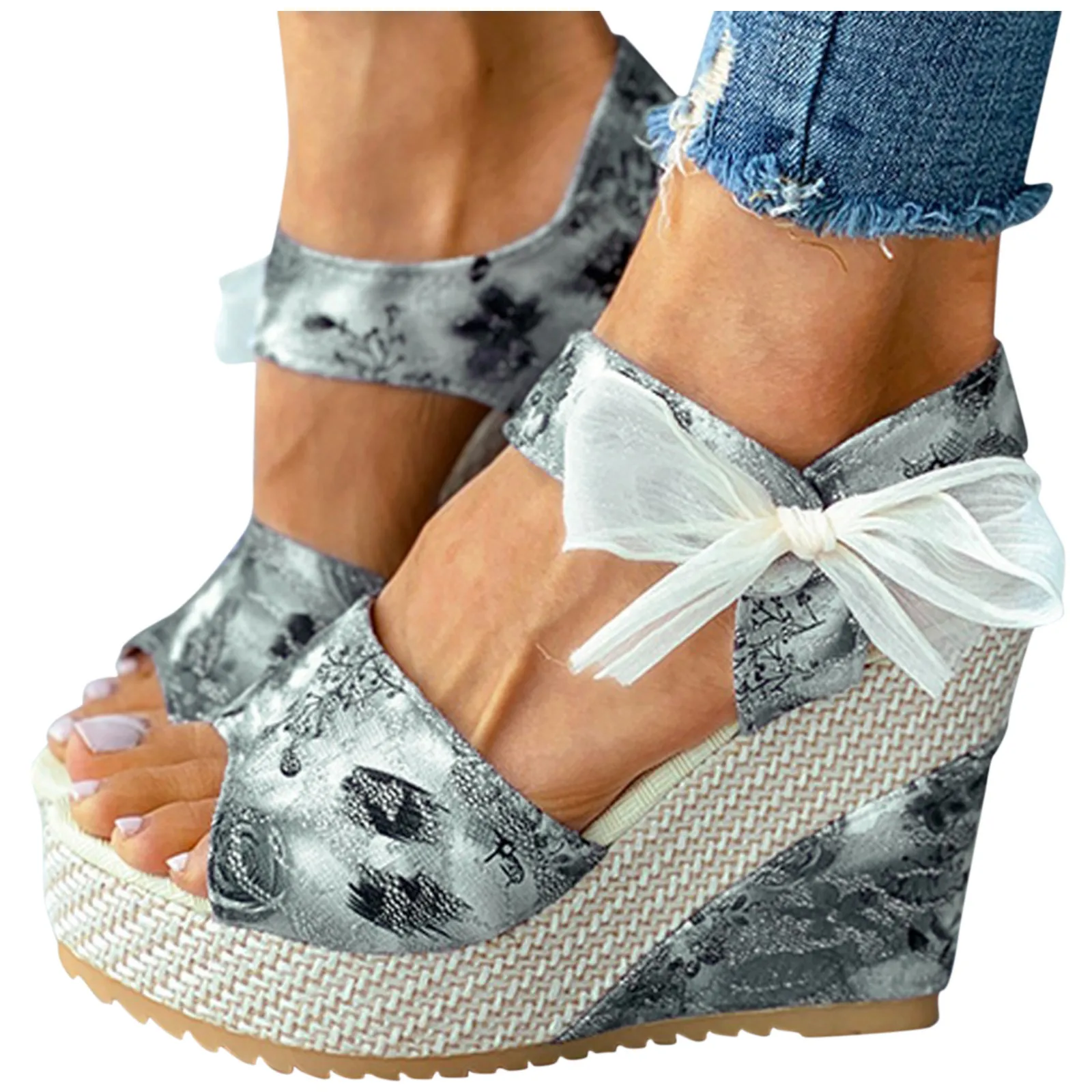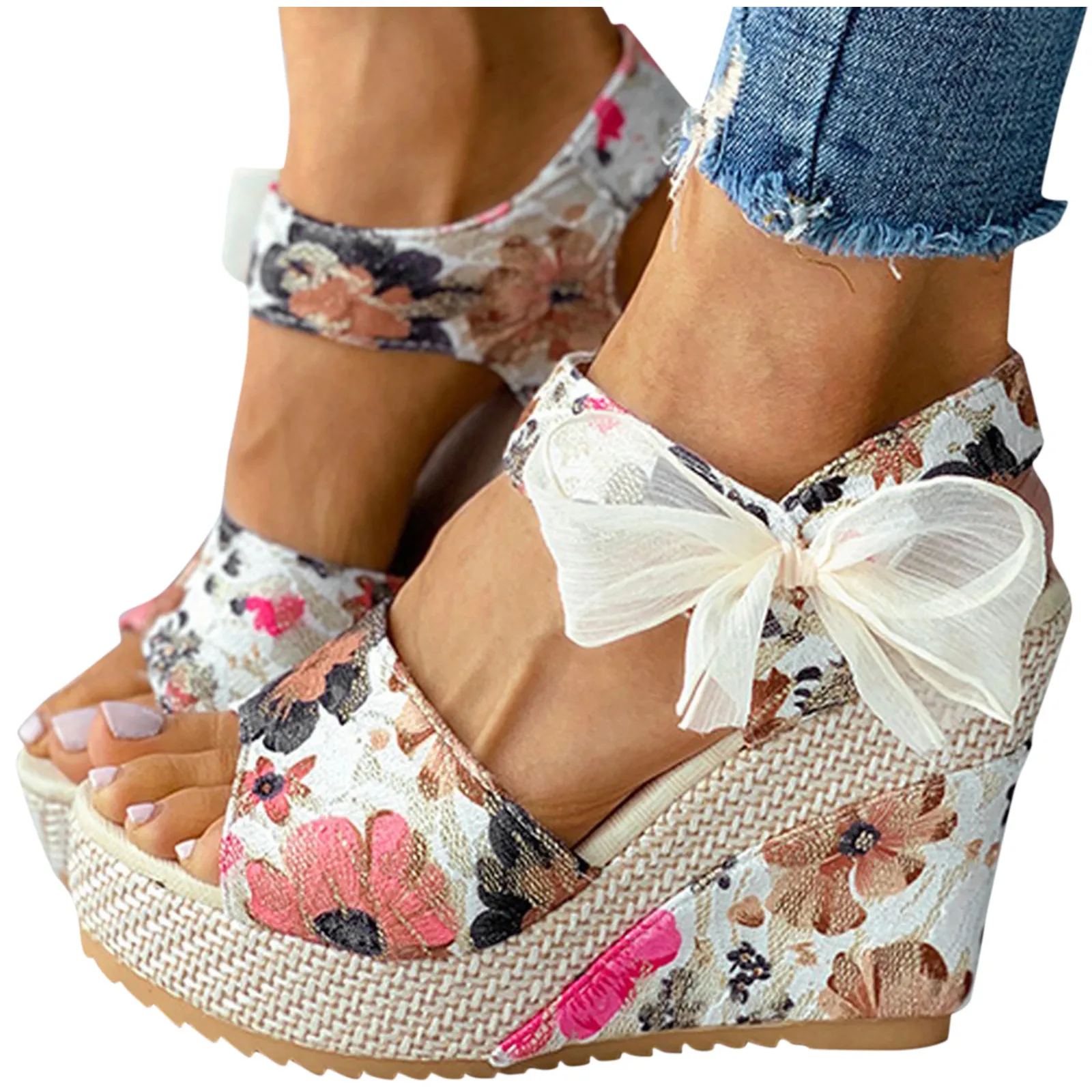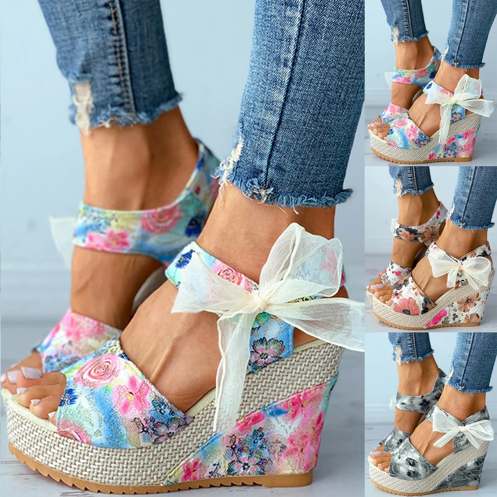 Женские туфли на каблуках; Туфли на танкеткеплатформе толстые нижние сандалии модное платье с цветочным узором; Туфли на шнуровке; Обувь на низком каблуке; Женские сандалии; sandalias de las mujeres