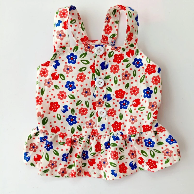 Цветочное на лямках с изображением собаки; Хлопковая ткань; Удобная ткань; Принт с цветочным узором; Симпатичная и милая одежда; Ребенок-питомец более милый и милый после ношения.