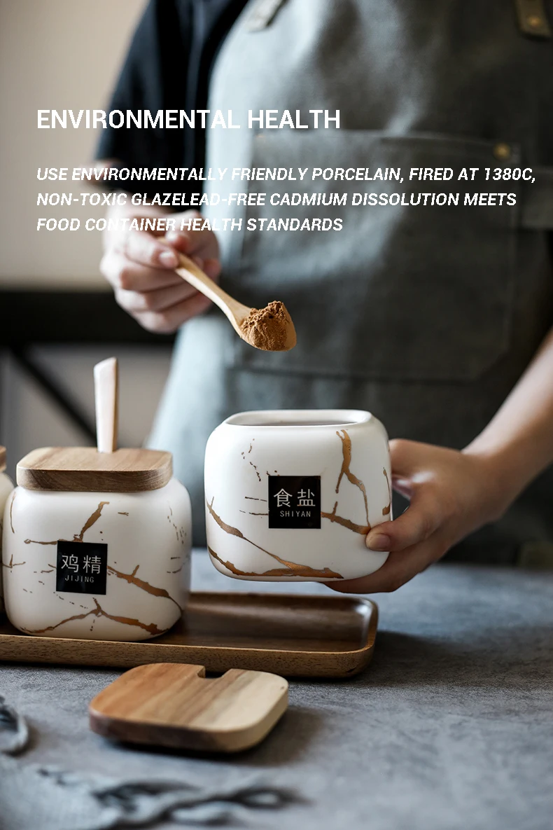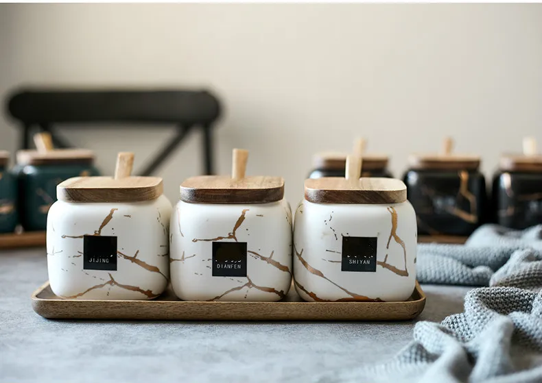 Набор керамических баков для приправ, роскошный шейкер с мраморным ...